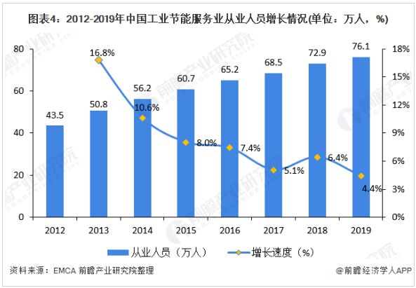 2019年EMCA的數(shù)據(jù)顯示,全國(guó)從事節(jié)能服務(wù)產(chǎn)業(yè)人員從2012年底43.5萬(wàn)人增長(zhǎng)到76.1萬(wàn)人。未來(lái),隨著節(jié)能服務(wù)產(chǎn)業(yè)規(guī)模的不斷擴(kuò)大,從業(yè)人員將呈現(xiàn)逐漸增多的趨勢(shì),但隨著行業(yè)對(duì)從業(yè)人員門檻的提高,增速仍將繼續(xù)放緩。預(yù)計(jì)2020年,全國(guó)節(jié)能服務(wù)產(chǎn)業(yè)從業(yè)人員將達(dá)到79萬(wàn)人,2025年,全國(guó)從事節(jié)能服務(wù)產(chǎn)業(yè)人員將超過(guò)96萬(wàn)人。