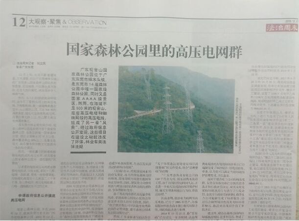多組高壓線網(wǎng)和十余座線塔穿行架設(shè)在觀音山園內(nèi)并橫跨數(shù)個山頭,導(dǎo)致了公園的多項基礎(chǔ)設(shè)施無法實施。 每個到訪觀音山公園的游客都能看到多條高壓輸電線,像斑駁的蜘蛛網(wǎng)橫在公園上空。 2、22年不給民企供電! 因為不停地?fù)?jù)理力爭反映情況,觀音山公園就被有針對性地“關(guān)照”。2007年7-8月,供電公司連續(xù)對公園無故停電45天,就是為了配合時任市委書記劉志庚(2017年被判刑)搶奪公園。之后公園多次申請增加對公園區(qū)域擴大供電也沒有解決。 公園方堅決反對南方電網(wǎng)違反《森林保護法》,在沒有取得合法手續(xù)的情況下,強行穿越國家森林公園在公園內(nèi)架設(shè)7組高壓線塔。因為此舉對整個景觀產(chǎn)生破壞,也破壞了生態(tài),影響了公園未來的發(fā)展,游客的安全也得不到保障。公園方明確向東莞市供電局復(fù)函不同意在公園內(nèi)非法架設(shè)高壓線,后供電局強行在公園內(nèi)毀林施工。于是公園就向鎮(zhèn)、市、省及國務(wù)院、中紀(jì)委等多個機關(guān)發(fā)去緊急報告。省林業(yè)廳也曾致函供電部門對此提出質(zhì)疑。在電力部門強行架設(shè)高壓線的情況下,公園于2013年1月向法院起訴要求供電局一是賠償50萬元的綠化費、二是2年內(nèi)把線塔全部搬走,5月份供電局收到了起訴材料。6月1日,公園就收到了樟木頭供電分局發(fā)來的《樟木頭鎮(zhèn)錯峰輪休的通知》,要求公園在6月1日至30日的7:30-22:30停止使用網(wǎng)電,后提示7月無通知繼續(xù)執(zhí)行輪休。這樣從此公園就被執(zhí)行錯峰停電,而公園附近其他的酒店、旅游景點和工廠等都沒有實行錯峰用電。 迄今為止,公園用電問題仍然沒有得到合法解決。東莞市輸電線路只進入公園約600米左右,東莞市供電局僅提供觀音山國家森林公園約20%的市政供電,其他約80%供電是公園自己用柴油發(fā)電機解決,而這個時間居然前后持續(xù)22年! 2020年12月22日央視《談事說理》欄目播出專題“《談事說理》之?dāng)R淺的公園”其中就著重談到觀音山國家森林公園懸而未決的基本供電問題。 在專題節(jié)目中,北京林業(yè)大學(xué)教授楊朝霞發(fā)表觀點:我們說二十幾年來,他80%的電是他自己發(fā)電的,就是東莞市供電公司不給。這個來說是違法的。因為我們的《電力法》是明確規(guī)定的,就是電力公司、電力的供電機構(gòu)是有給用戶供電的強制的義務(wù)的。你不能拒絕供電,如果是拒絕供電,那么就是違法,就是你的強制義務(wù)。