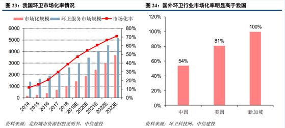 環(huán)衛(wèi):市場化驅(qū)動(dòng)行業(yè)高增長,新能源環(huán)衛(wèi)車有望爆發(fā) 近年來隨著城鎮(zhèn)化進(jìn)程不斷推進(jìn)以及市場化程度的不斷提高,我國環(huán)衛(wèi)市場服務(wù)需求有望快速增長。2020年,國內(nèi)環(huán)衛(wèi)市場化率約為54.4%,相比于海外仍有30%左右的提升空間,我們預(yù)計(jì)隨著市場化率的逐步提升,環(huán)衛(wèi)服務(wù)市場有望維持20%以上增速。成本端上,我國環(huán)衛(wèi)行業(yè)機(jī)械化率仍有一定提升空間,而機(jī)械化率的提升能夠有效降低環(huán)衛(wèi)行業(yè)人工成本。同時(shí),目前我國新能源環(huán)衛(wèi)車滲透率僅為2.2%,在政策推動(dòng)下新能源環(huán)衛(wèi)車銷量有望迎來爆發(fā)式增長。