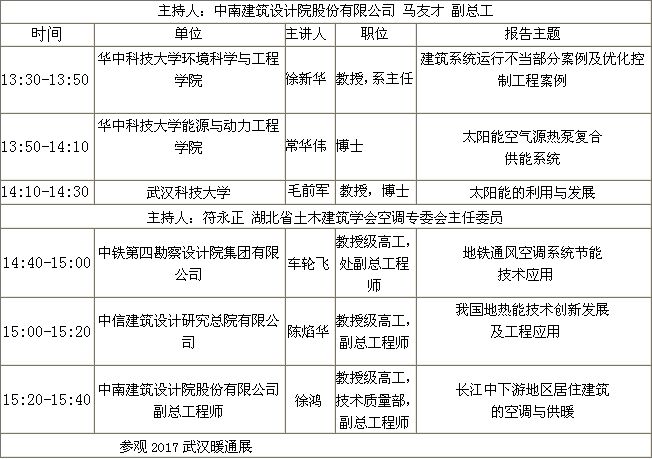 時(shí) 間:2017年3月29日 12:00-16:00 地 點(diǎn):武漢國(guó)際博覽中心B2-2會(huì)議室(100人) 組織單位:湖北省制冷學(xué)會(huì)、武漢制冷學(xué)會(huì)、武漢風(fēng)向標(biāo)會(huì)展服務(wù)有限公司 參會(huì)人員:建設(shè)管理機(jī)構(gòu)、建設(shè)、設(shè)計(jì)、施工、監(jiān)理單位以及相關(guān)單位。